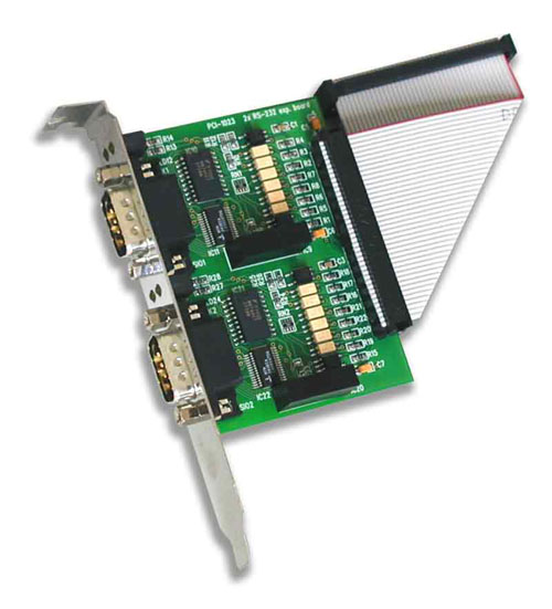 The first two ports lead to the D-Sub 9 connectors, located on the card mounting bracket, the other two ports are accessible via the expansion card, fitted with the interface circuits located in the next slot. The expansion card is included.